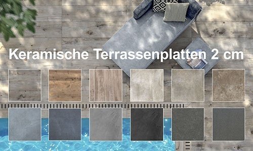 Terrassenplatten 2 cm aus Feinsteinzeug. Warum ein Terrassenbelag aus Feinsteinzeug. Keramische Terrassenplatte 60x60x2 cm oder 45x90x2 cm 2 Stck pro Pack 1 ab.